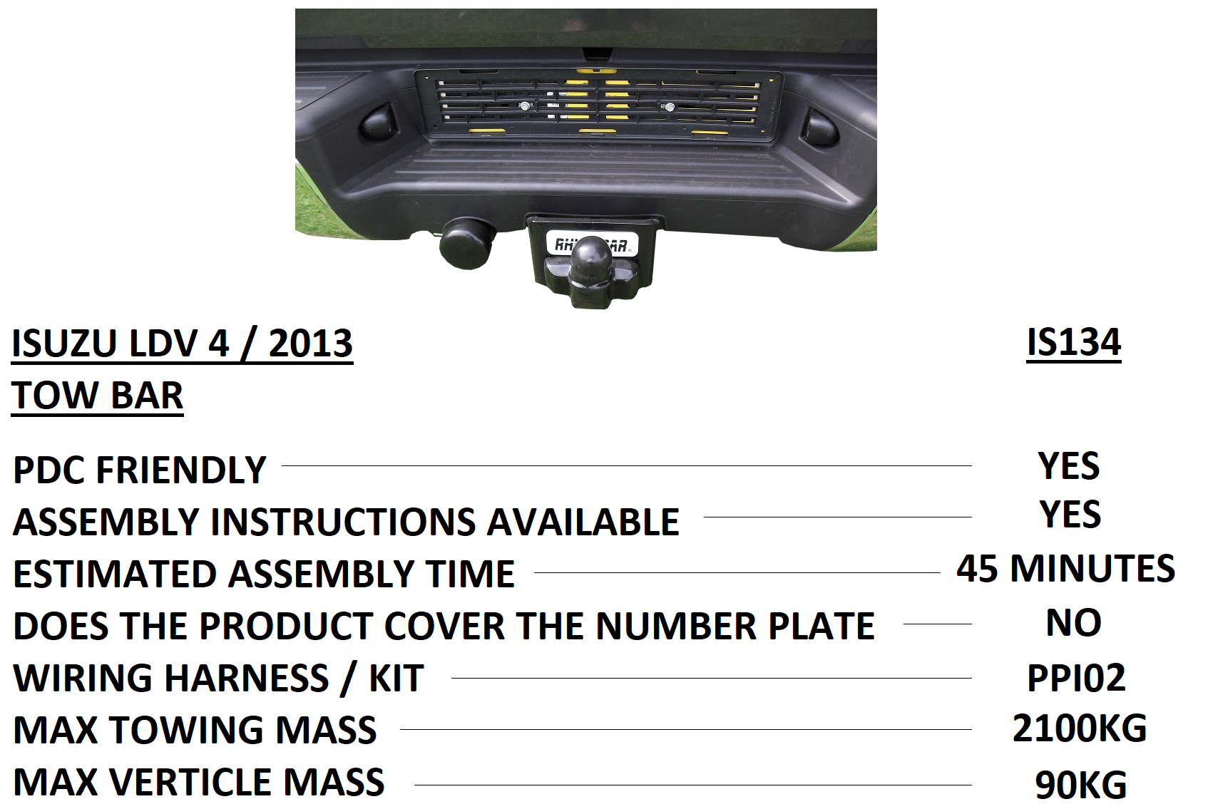 Product Code: IS134This high-strength towbar, made from durable steel with a corrosion-resistant finish, ensures safe and secure towing of various trailers and bike rack equipment. Easy to install with a precision fit, it delivers a reliable performance for any journey.