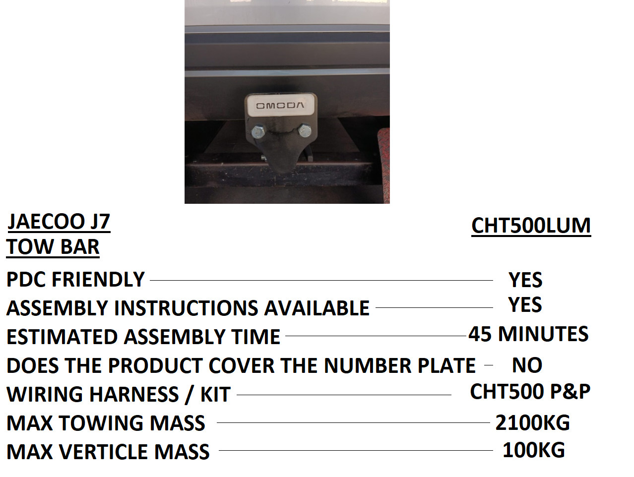 Jaecoo J7 Lockable Detachable Tow Bar (2024-) - CHT500LUM