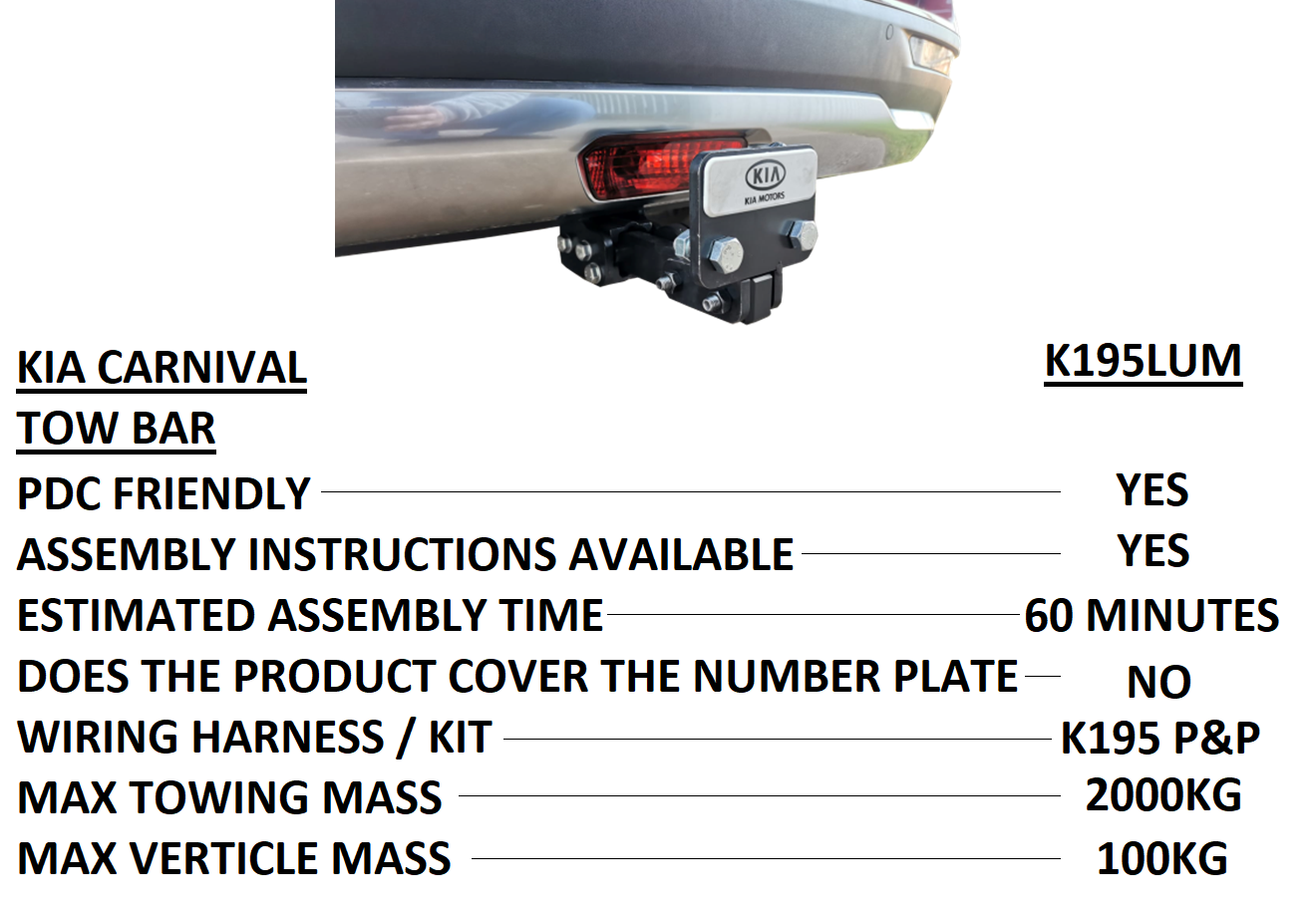 KIA Carnival Lockable Detachable Tow Bar (2021-) - K195LUM