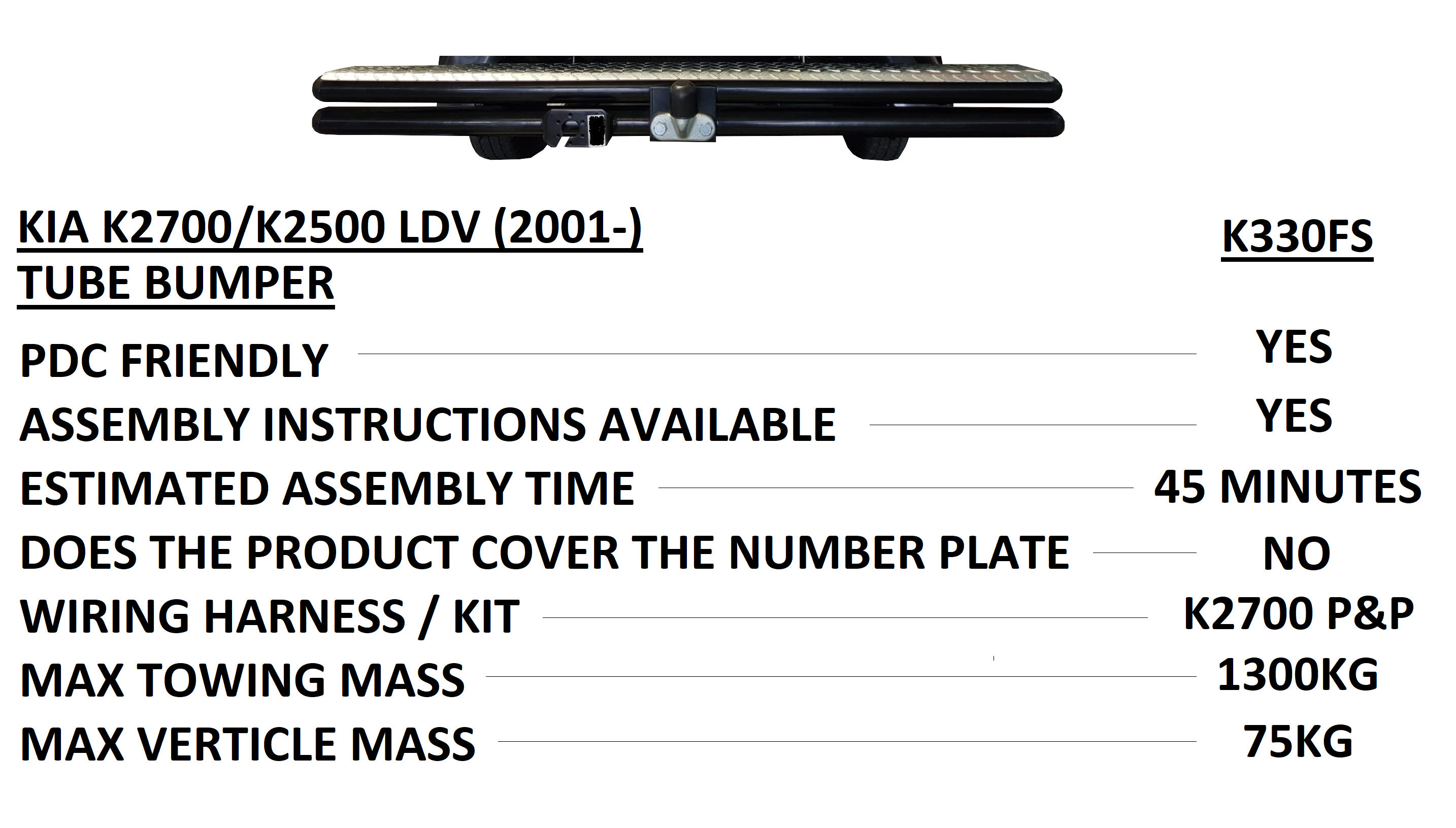 Product Code: K330FSThe step tube bumper blends functionality and style, providing a secure foothold for easy truck bed access, robust protection against impacts and debris, and an option for towing. Constructed from high-strength steel with a corrosion-resistant finish, it's built to endure the elements while enhancing your vehicle's rear-end profile.