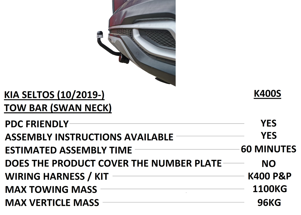 KIA Seltos Swan Neck Tow Bar (10/2019-) - K400S