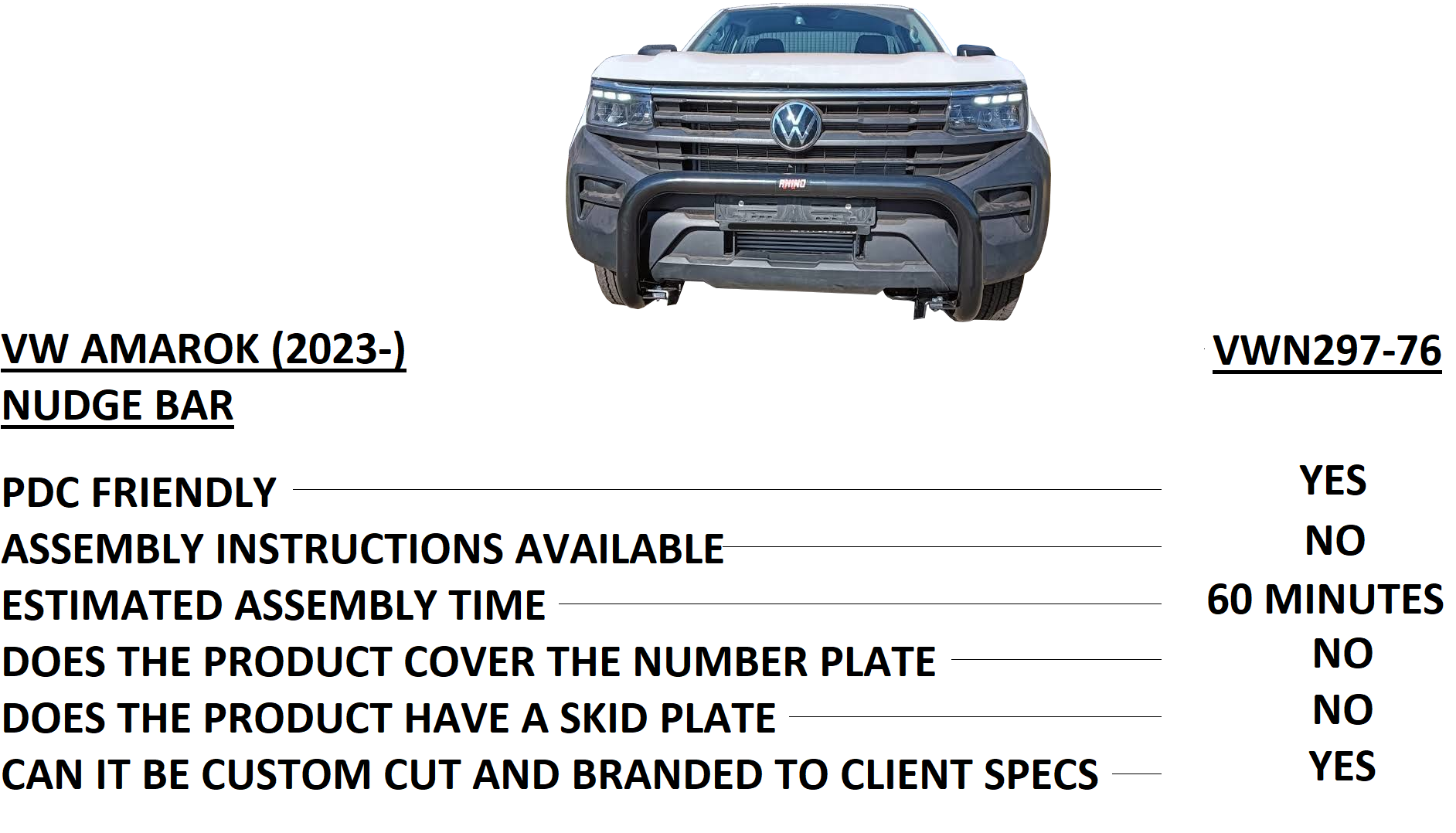 Product Code: VWN297-76This premium nudge bar adds style and subtle protection, guarding your vehicle's front end from minor bumps and debris. Made from corrosion-resistant steel, it's lightweight, durable, and easy to install for the perfect blend of form and function.