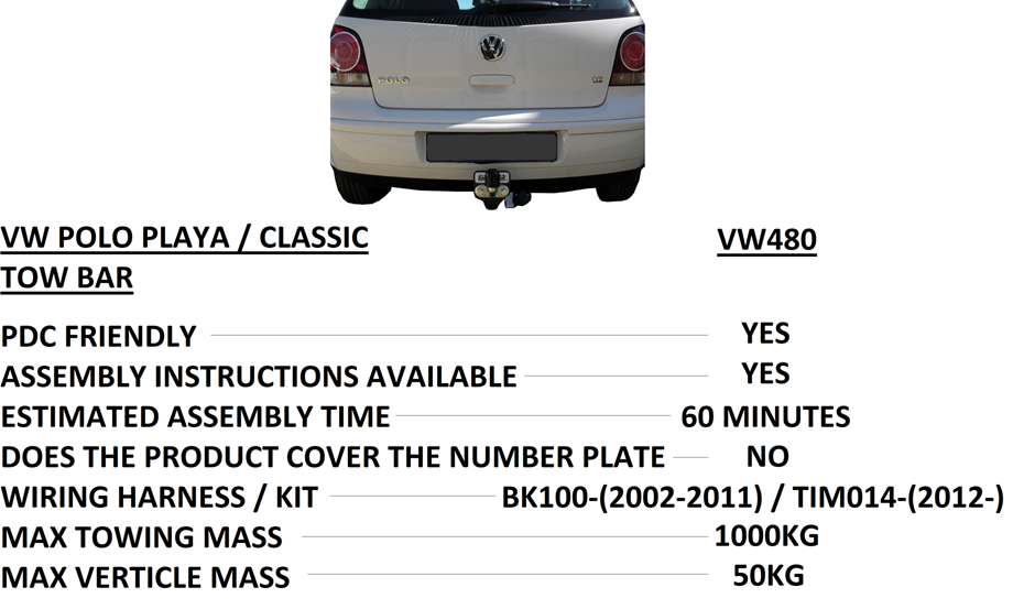 VW Polo Vivo Hatch/Sedan Fixed Tow Bar (2011-) - VW480