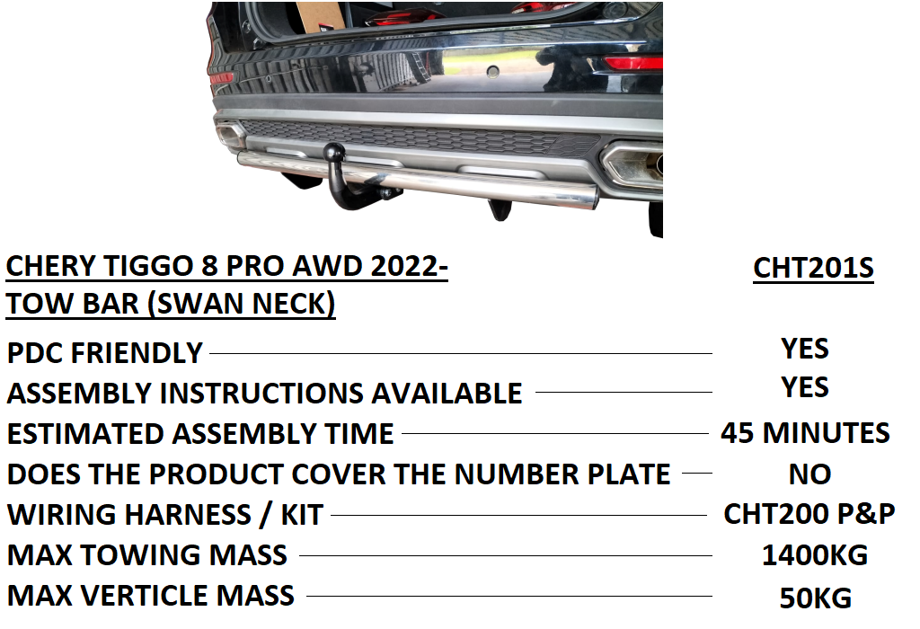 Chery Tiggo 8 Pro AWD Swan Neck Tow Bar (2024-) - CHT201S