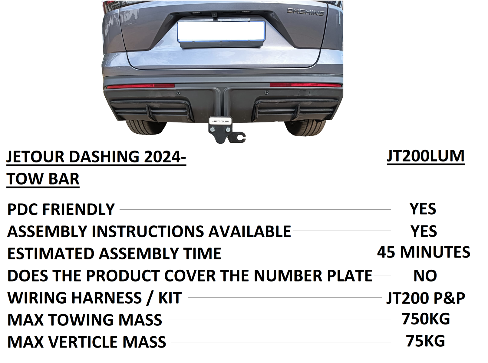 Product Code: JT200LUMThis high-strength towbar, made from durable steel with a corrosion-resistant finish, ensures safe and secure towing of various trailers and bike rack equipment. Easy to install with a precision fit, it delivers a reliable performance for any journey.