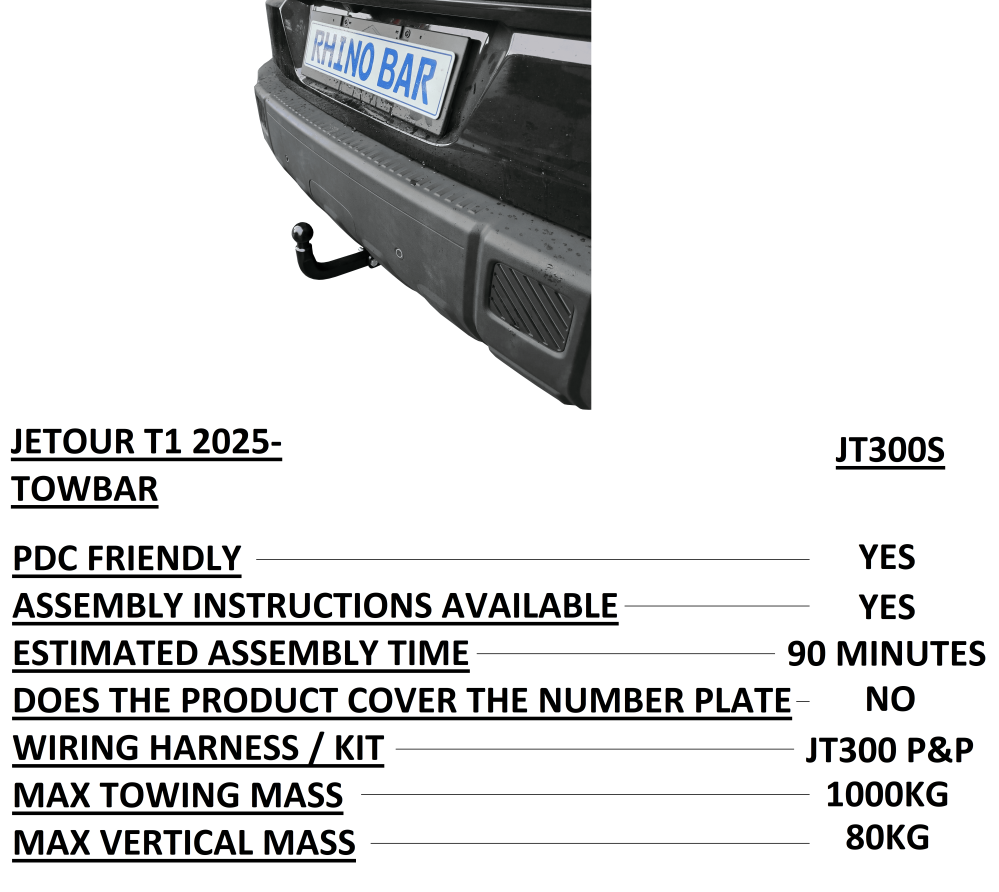 Product Code: JT300SThis high-strength towbar, made from durable steel with a corrosion-resistant finish, ensures safe and secure towing of various trailers and bike rack equipment. Easy to install with a precision fit, it delivers a reliable performance for any journey.