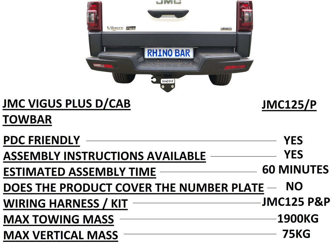 Product Code: JMC125PThis high-strength towbar, made from durable steel with a corrosion-resistant finish, ensures safe and secure towing of various trailers and bike rack equipment. Easy to install with a precision fit, it delivers a reliable performance for any journey.