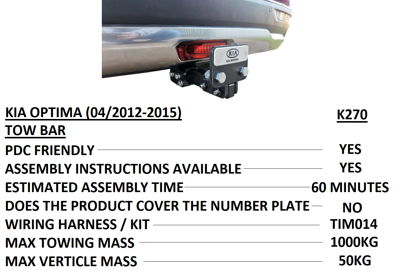 Product Code: K270This high-strength towbar, made from durable steel with a corrosion-resistant finish, ensures safe and secure towing of various trailers and bike rack equipment. Easy to install with a precision fit, it delivers a reliable performance for any journey.