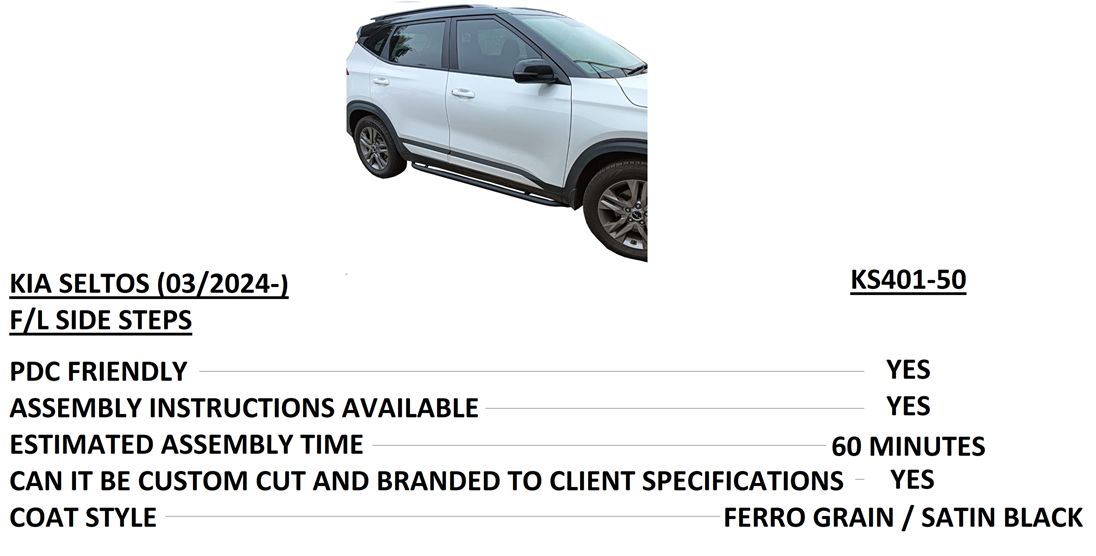 Product Code: KS401-50These heavy-duty side steps offer easy vehicle access and a rugged look, with a non-slip surface for secure footing in any weather. Made from high-strength materials with a corrosion-resistant finish, they provide both function and style, with a precise fit for all types of vehicles.