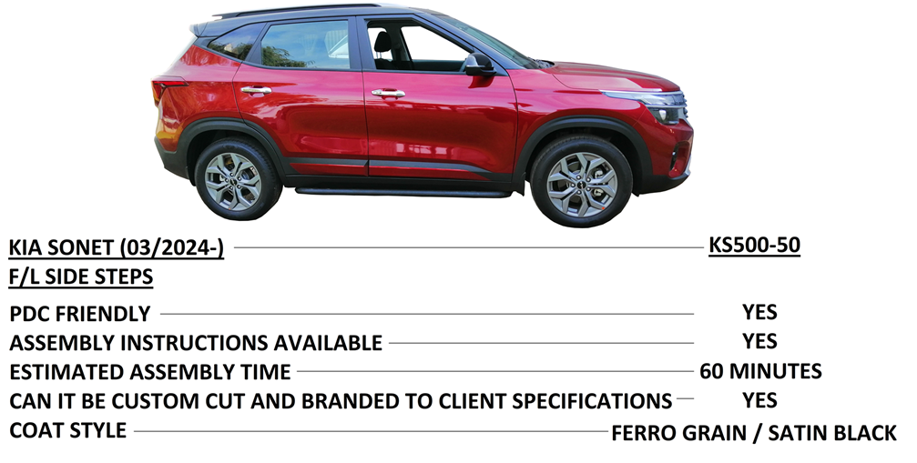 Product Code: KS500-50These heavy-duty side steps offer easy vehicle access and a rugged look, with a non-slip surface for secure footing in any weather. Made from high-strength materials with a corrosion-resistant finish, they provide both function and style, with a precise fit for all types of vehicles.