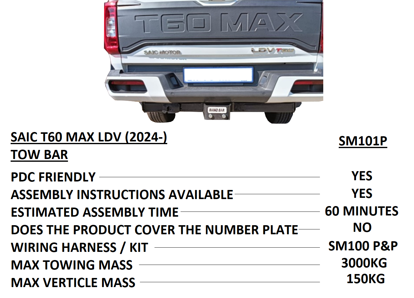 Product Code: SM101PThis high-strength towbar, made from durable steel with a corrosion-resistant finish, ensures safe and secure towing of various trailers and bike rack equipment. Easy to install with a precision fit, it delivers a reliable performance for any journey.