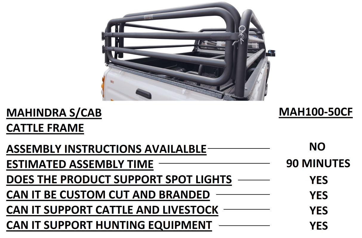 Mahindra Pik Up Single Cab Cattle Frame - MAH100-50CF