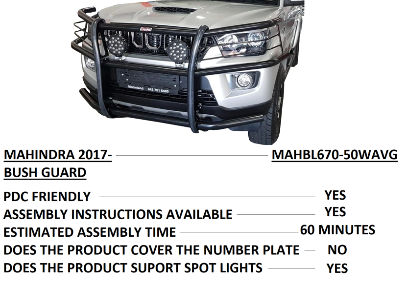 Product Code: MAHBL670-50WAVGConquer tough trails with this heavy-duty, wrap-around bush guard that offers full protection for your vehicle's grille, headlights, and fenders. Made from corrosion-resistant steel, it combines durability, style, and easy installation for a bold, aggressive look and reliable performance in harsh environments.