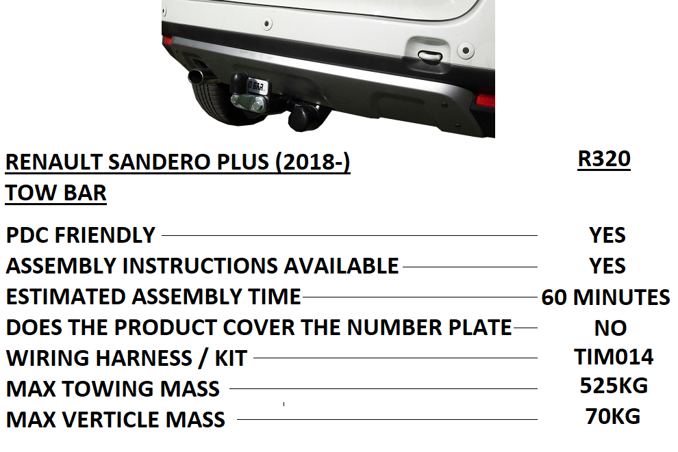Renault Sandero Stepway Plus Fixed Tow Bar (2018-) - R320