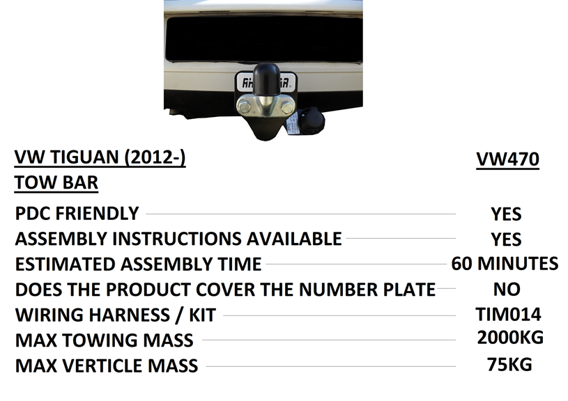 Product Code: VW470This high-strength towbar, made from durable steel with a corrosion-resistant finish, ensures safe and secure towing of various trailers and bike rack equipment. Easy to install with a precision fit, it delivers a reliable performance for any journey.